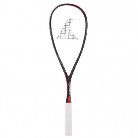 The ProKennex Momentum Kinetic delivers power and arm-friendliness to squash. This racquet features ProKennex's timeless Kinetic technology but in the racquet head for the first time in its squash line. Adding Kinetic technology to the racquet hoop increases the amount of power and arm-friendliness this racquet provides. Kinetic technology is based in the bearings strategically placed around the racquet hoop that release as you swing and absorb then redirect impact from the ball. While transferring more power into your shots, Kinetic technology also reduces the amount of vibration that is felt in your arm making this a true powerhouse on both the singles and doubles squash court. The 14x18 string pattern brings control so you can easily cut shots from the back court for a drop while still driving length that dies in the back corner. Overall the ProKennex Momentum Kinetic is a revolutionary squash racquet that puts more power into your hands.